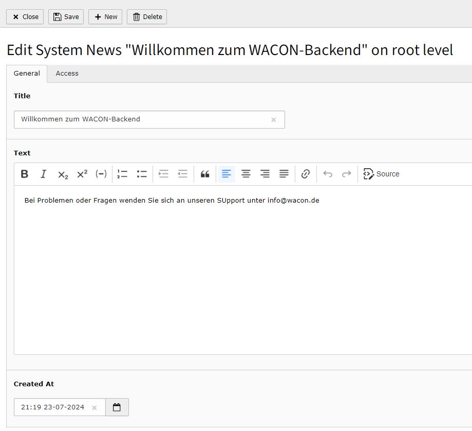 Außerdem kann eine Systemmeldung (im Beispiel “Bei Problemen oder Fragen…”) ausgegeben werden. Dies bietet sich z.B. an, wenn die Redakteurszugänge aufgrund von Wartungsarbeiten gesperrt werden.