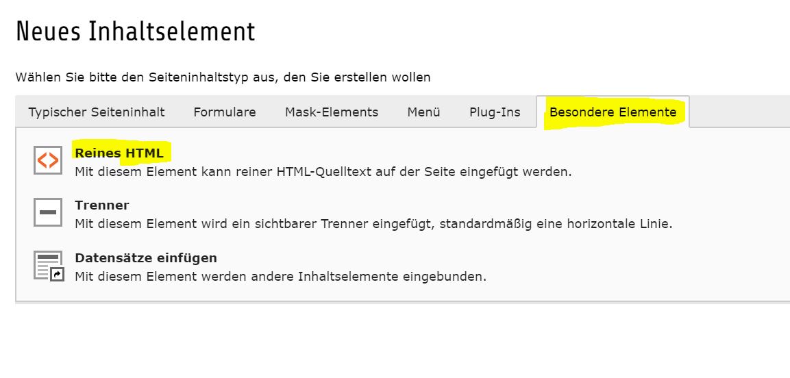 - Wählen Sie als Inhalts-Typ "Reines HTML".