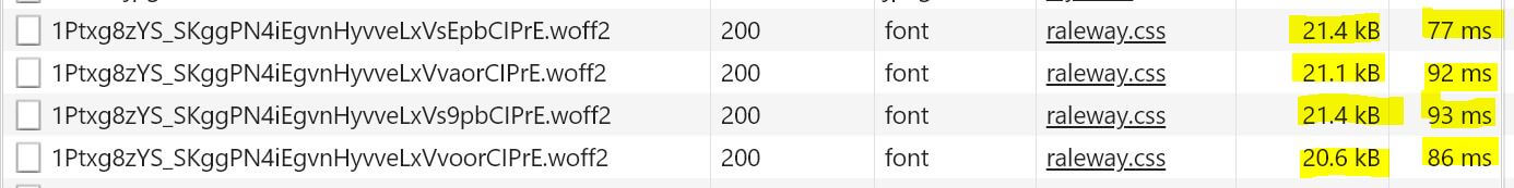 - eine nahezu unendliche Vielfalt an Schriftarten, die zusammen mit anderen Ressourcen (Bilder, CSS- und Javascript-Dateien usw.) beim Aufruf einer Seite geladen werden