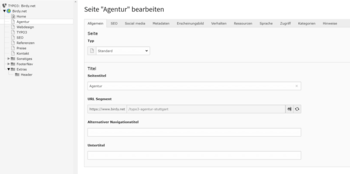 Die Seiteneigenschaften spielen insbesondere für die Suchmaschinenoptimierung eine wichtige Rolle. Hier können Titel, Seiten-URL, Seitenbeschreibung, die Integration in Sozialen-Netzwerken, die Sichtbarkeit für Suchmaschinen, Spracheinstellungen und vieles mehr eingestellt werden.