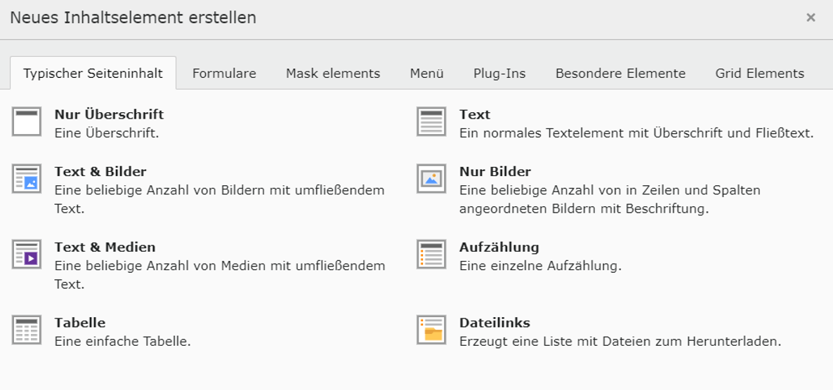 Basisfunktionen von TYPO3