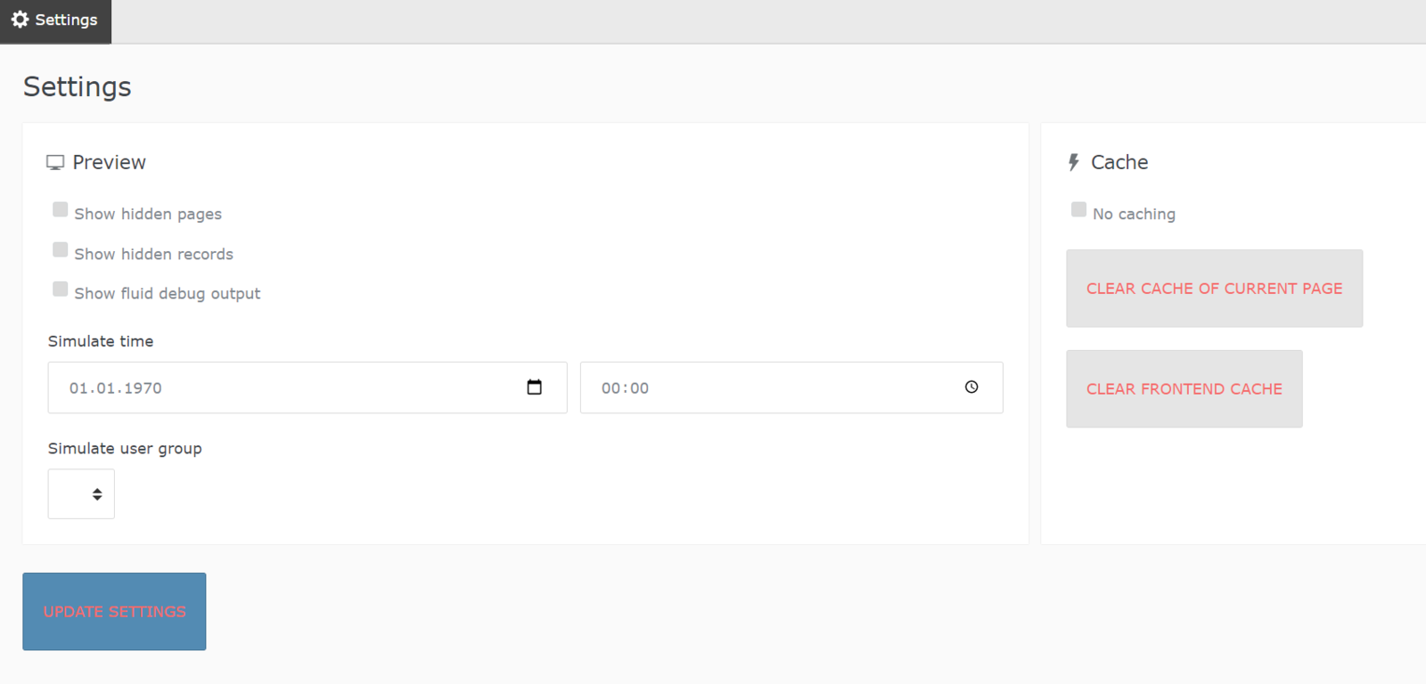 Das Admin-Panel bietet TYPO3-Entwicklern und -Integratoren die Möglichkeit unterschiedliche (Simulations-)Analysen durchzuführen: