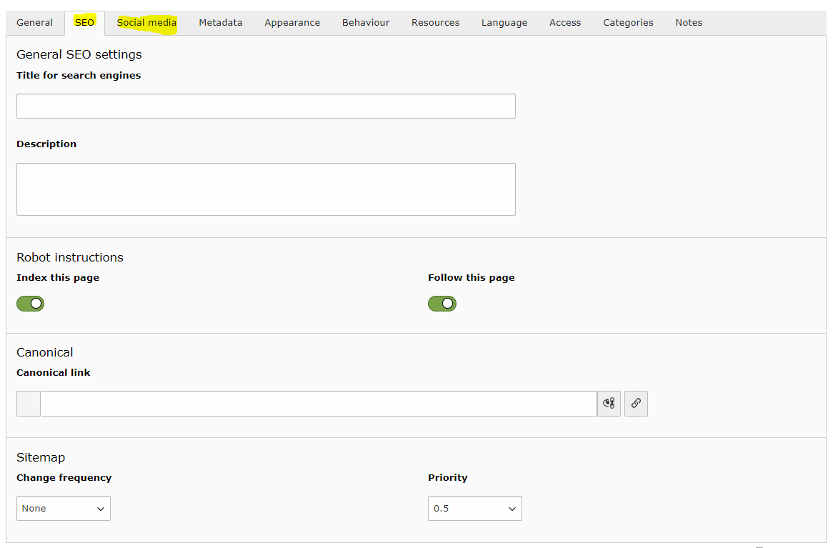 Das Canonical-Tag wird auf Basis der Sites-Einstellungen automatisch gesetzt. Das Feld kann also i.d.R. leer bleiben.
