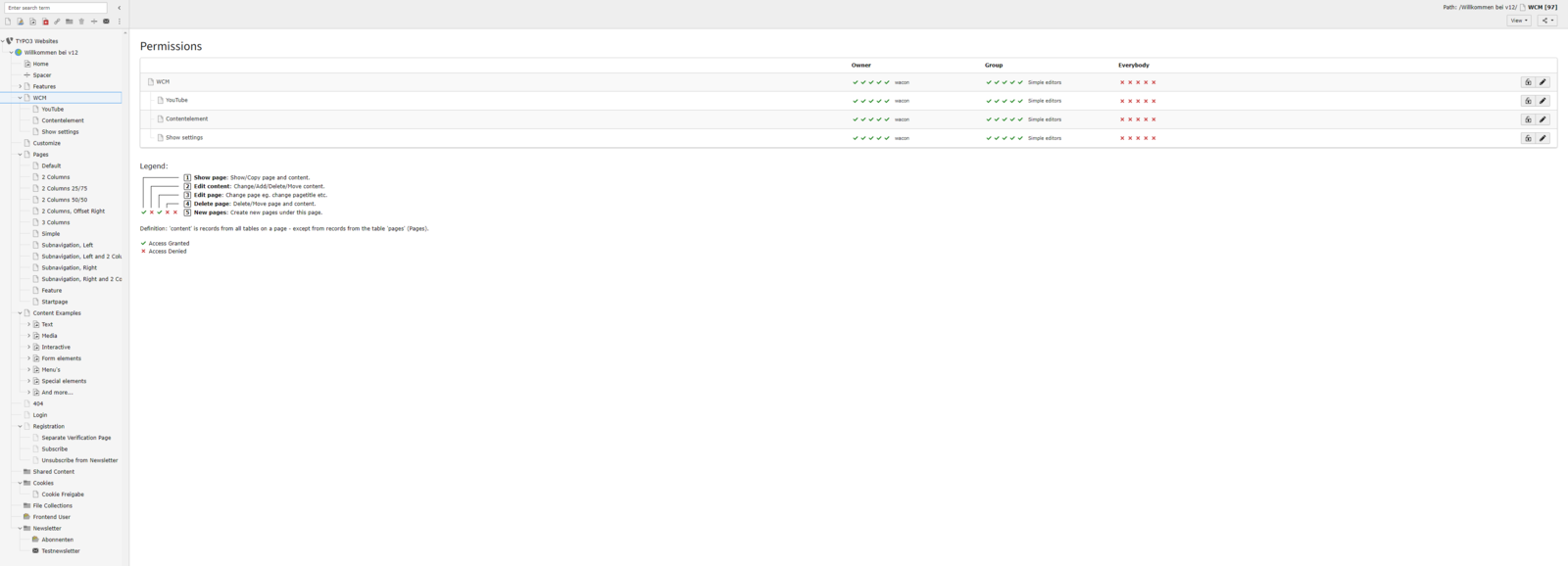 Access Modul von TYPO3