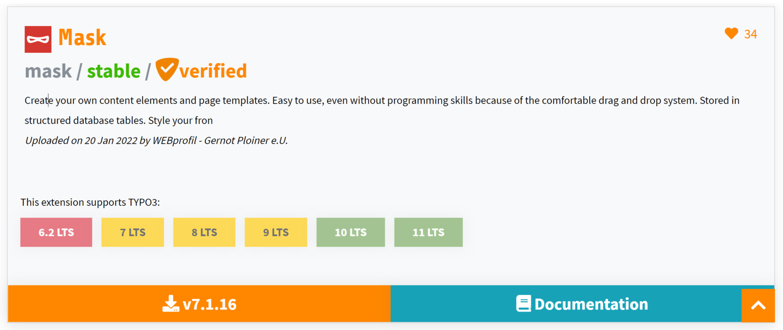 - die Extension wird im TYPO3 Extension Repository (und im Extension Manager) als "verified" gekennzeichnet und erhält somit ein Qualitäts-Gütesiegel