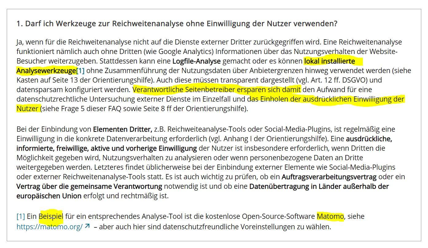 Der Landesbeauftragte für Datenschutz und Informationssicherheit Baden-Württemberg hat hierzu ein FAQ-Dokument veröffentlicht, dass dieses Verfahren grundsätzlich für möglich hält und sogar direkt auf Matomo verwiesen: