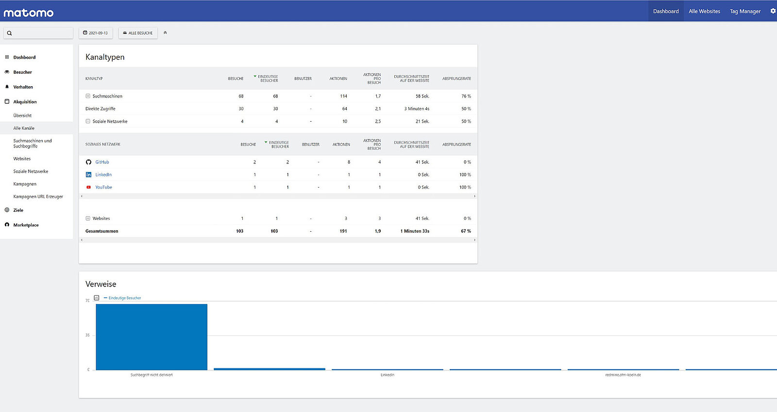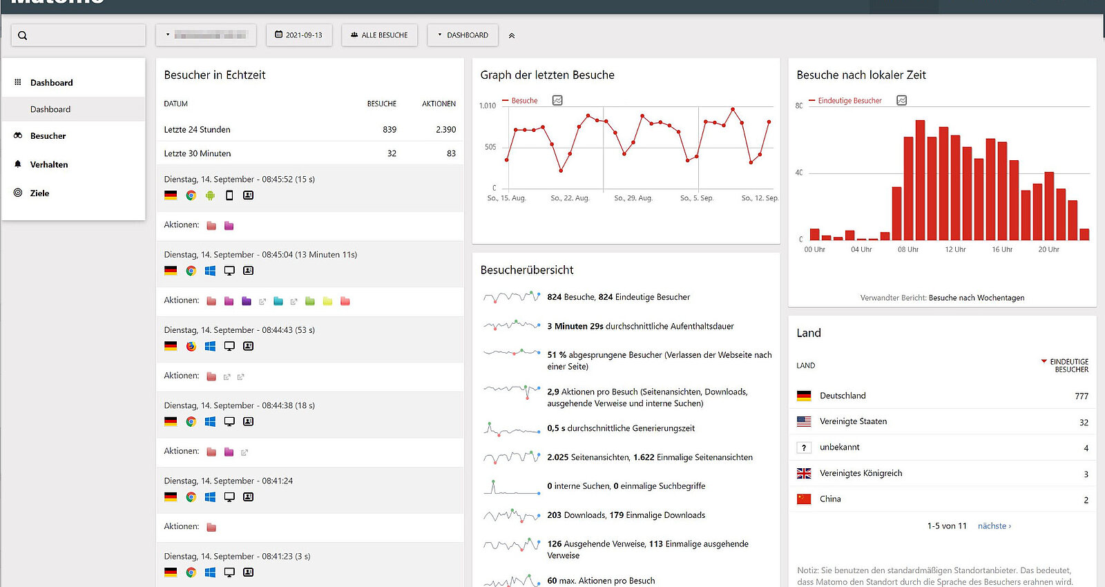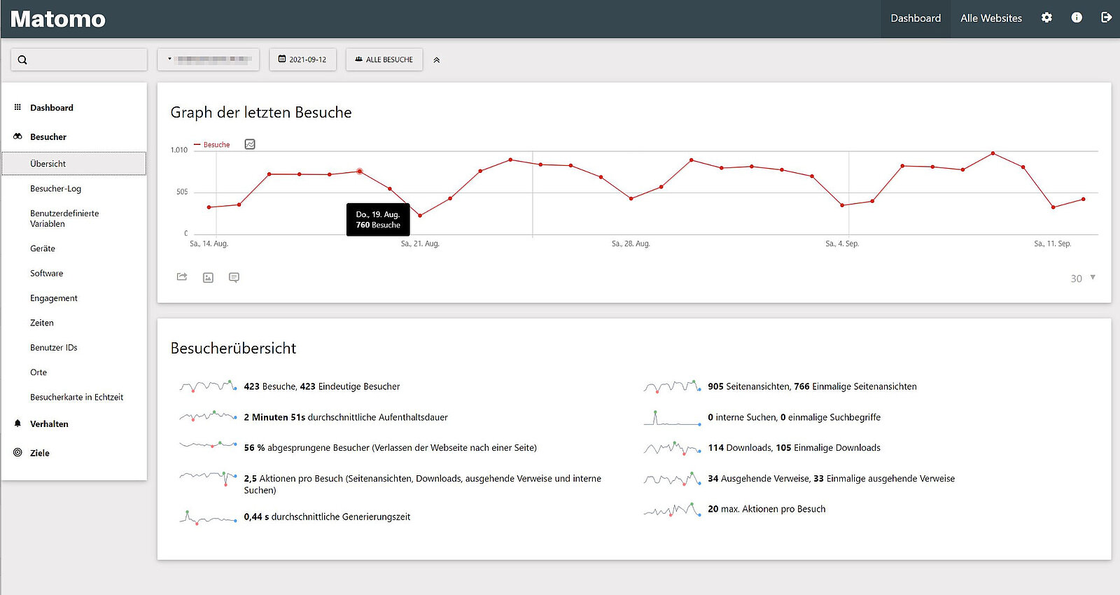 Mit Matomo können Sie für individuell auswählbare Zeiträume: